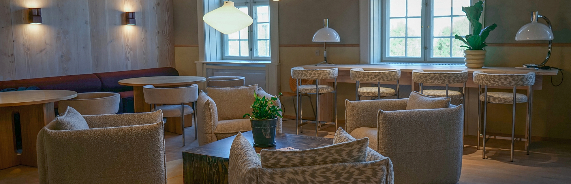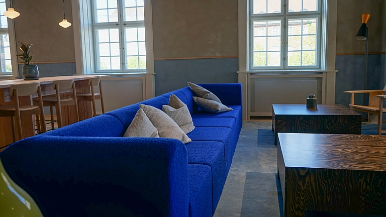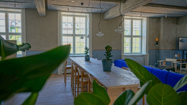 Møbler fra Langelinie i nye rammer – Møbler og inventar fra en ejendom på Langelinie Allé og fra ATP Ejendommes tidligere domicil i Møntergården genanvendes direkte. Dermed gives sofaer, arbejdsborde, planter, lamper og stole af god kvalitet, nyt liv i de nye rammer.