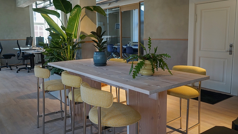 “Medarbejderne skal have lyst til at komme på kontoret, og det er fællesskabet, der skal trække. Det har derfor været afgørende, at indretningen indbyder til samarbejde. Og så skal der være faciliteter og et fællesskab, som ikke fås derhjemme,” siger Martin Vang Hansen og forventer, at den rigtige indretning øger kreativiteten og videndeling på tværs.